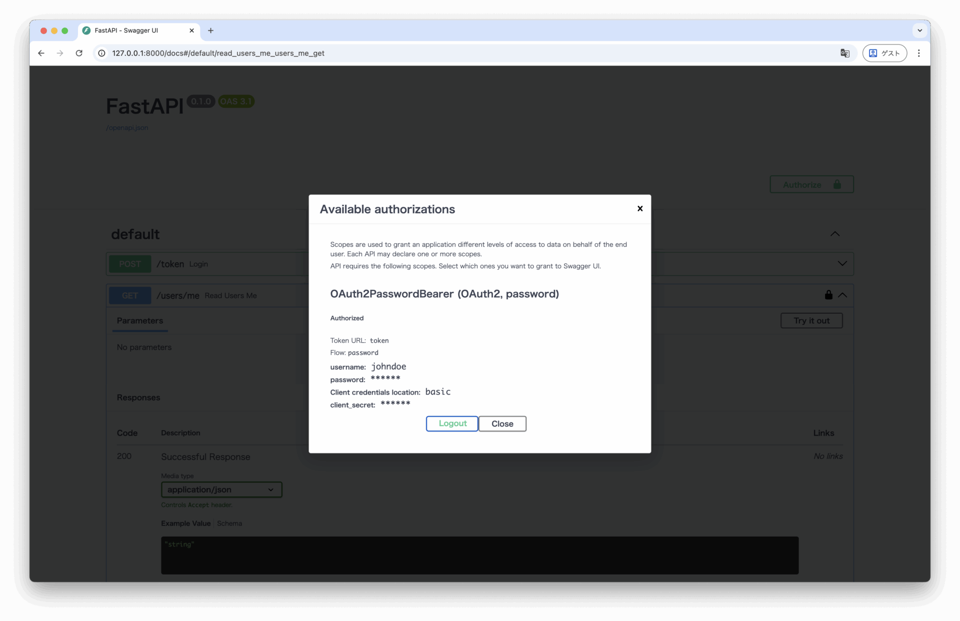 認証処理の実装方法が Django とは異なるため、今回は FastAPI で認証機能を試しながら理解を深めていきたいと思います。