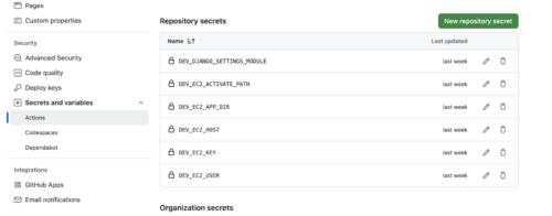 秘密鍵の情報やデプロイ先サーバー関連の接続情報など、機微な情報はこの secrets に設定して参照するようにしましょう。