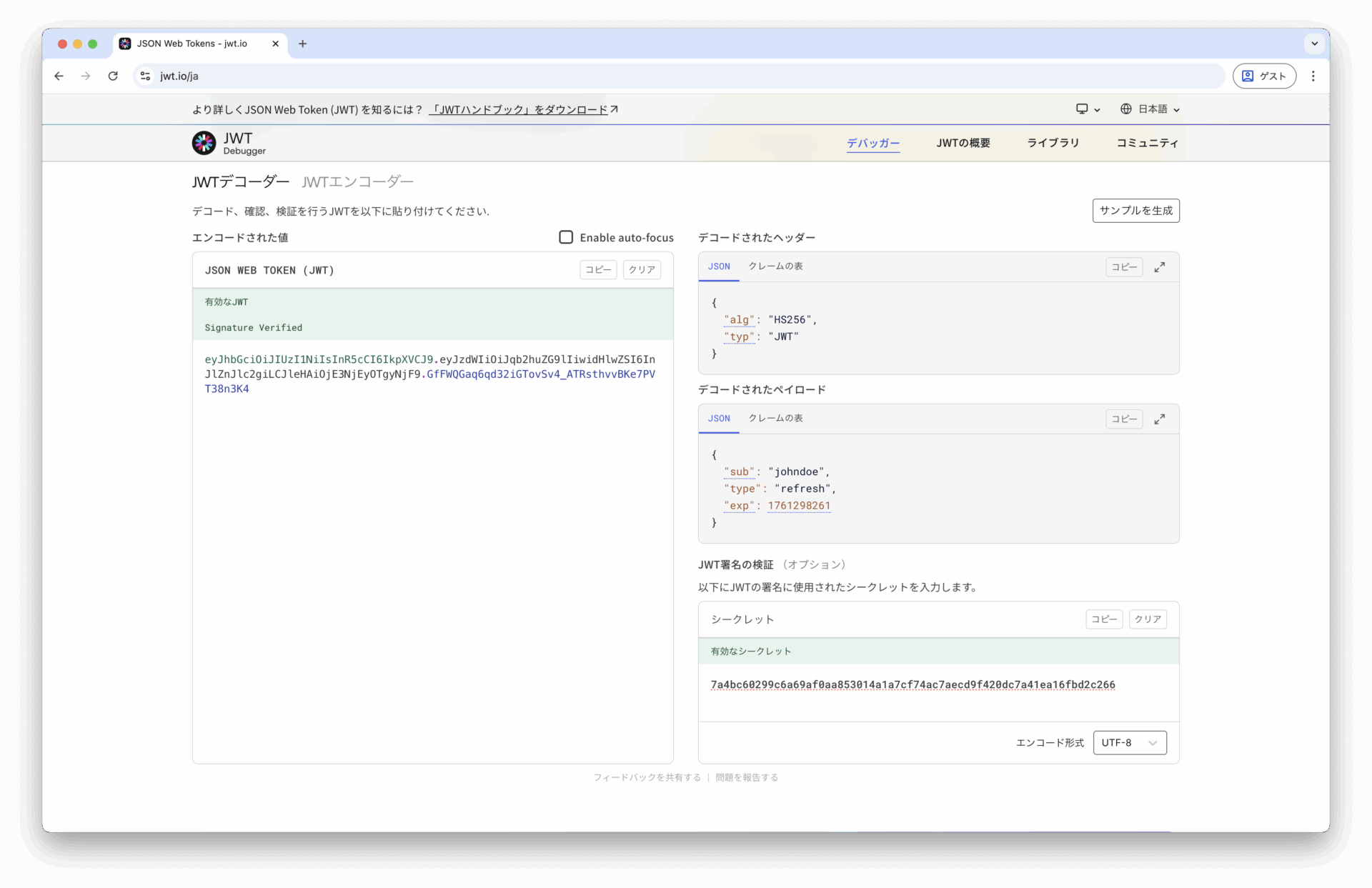 今回も jwt.io でリフレッシュトークンの中身を見てみます。